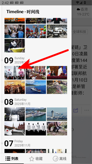 2、在功能菜單中,點(diǎn)擊時(shí)間線中的日期如2025年11月9日,進(jìn)入該日期的新聞列表。