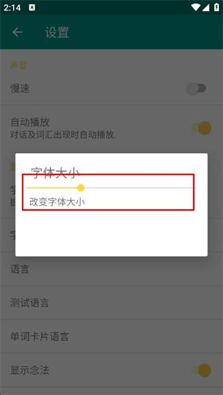 4、在字體調(diào)節(jié)彈窗中,拖動(dòng)滑塊即可調(diào)整字體。