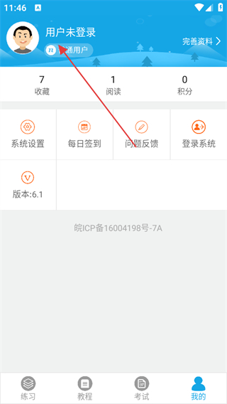 2、在我的頁面中,找到并點擊用戶未登錄的頭像區(qū)域,進入登錄注冊相關(guān)界面。