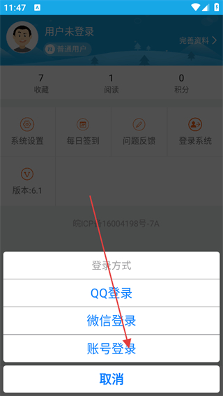 3、在跳轉(zhuǎn)的界面中,選擇賬號登錄選項,進入賬號注冊或登錄的操作頁面。
