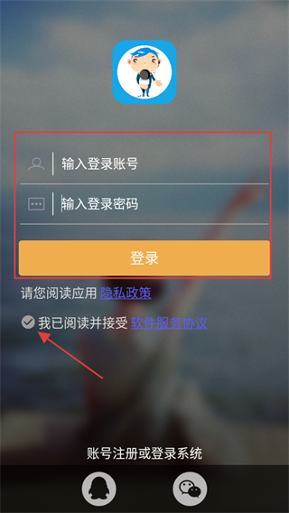 4、輸入手機號、登錄密碼,勾選我已閱讀并接受軟件服務(wù)協(xié)議,點擊注冊按鈕。