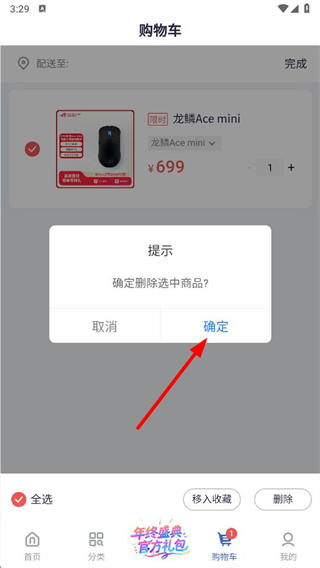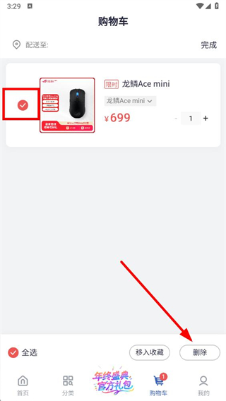 3、勾選要刪除的商品,若要全刪可勾選全選,再點擊右下角刪除。