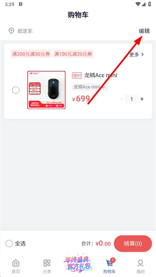 2、在購物車頁面,點擊右上角編輯按鈕。