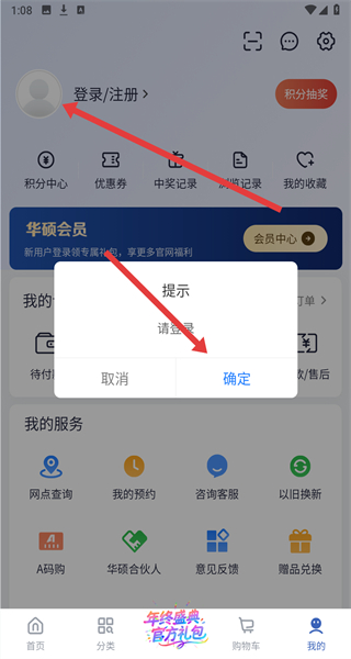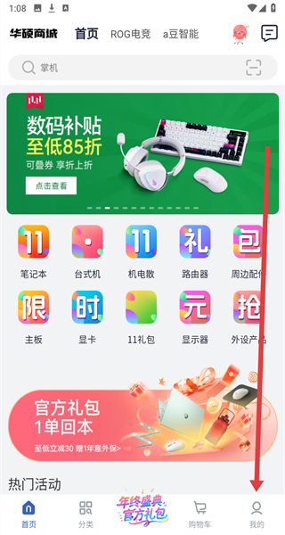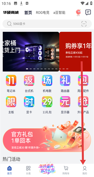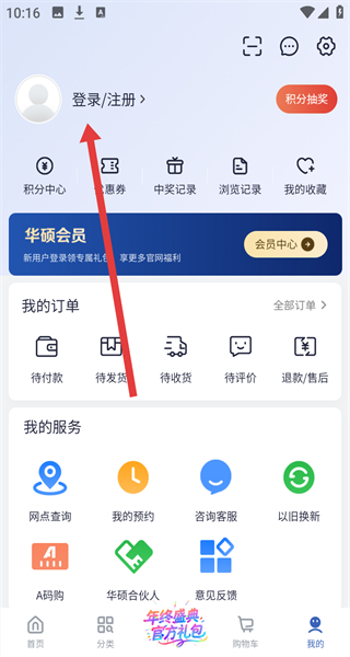1、在華碩商城APP首頁點擊右下角“我的”,進入個人中心頁面。