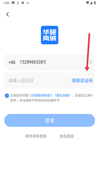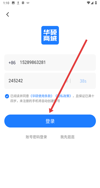 4、輸入獲取到的驗證碼后,點擊“登錄”按鈕,完成賬號登錄流程。