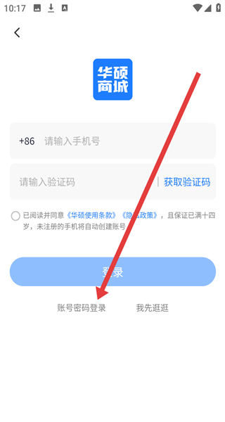 3、在登錄選擇頁面點擊“賬號密碼登錄”,進入賬號密碼登錄頁面。