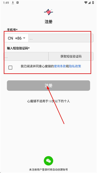 3、在注冊(cè)頁(yè)面輸入手機(jī)號(hào),并填入驗(yàn)證碼,點(diǎn)擊注冊(cè),完成賬號(hào)注冊(cè)流程。