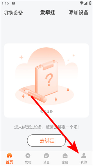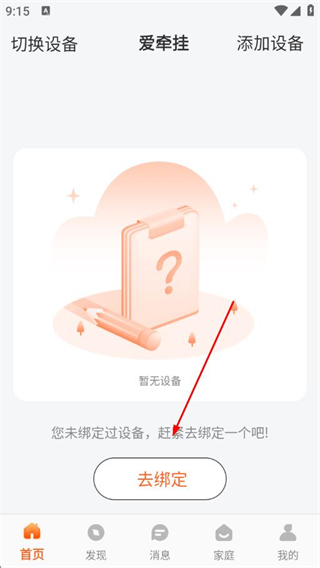 1、打開愛牽掛care APP,在首頁點(diǎn)擊去綁定。