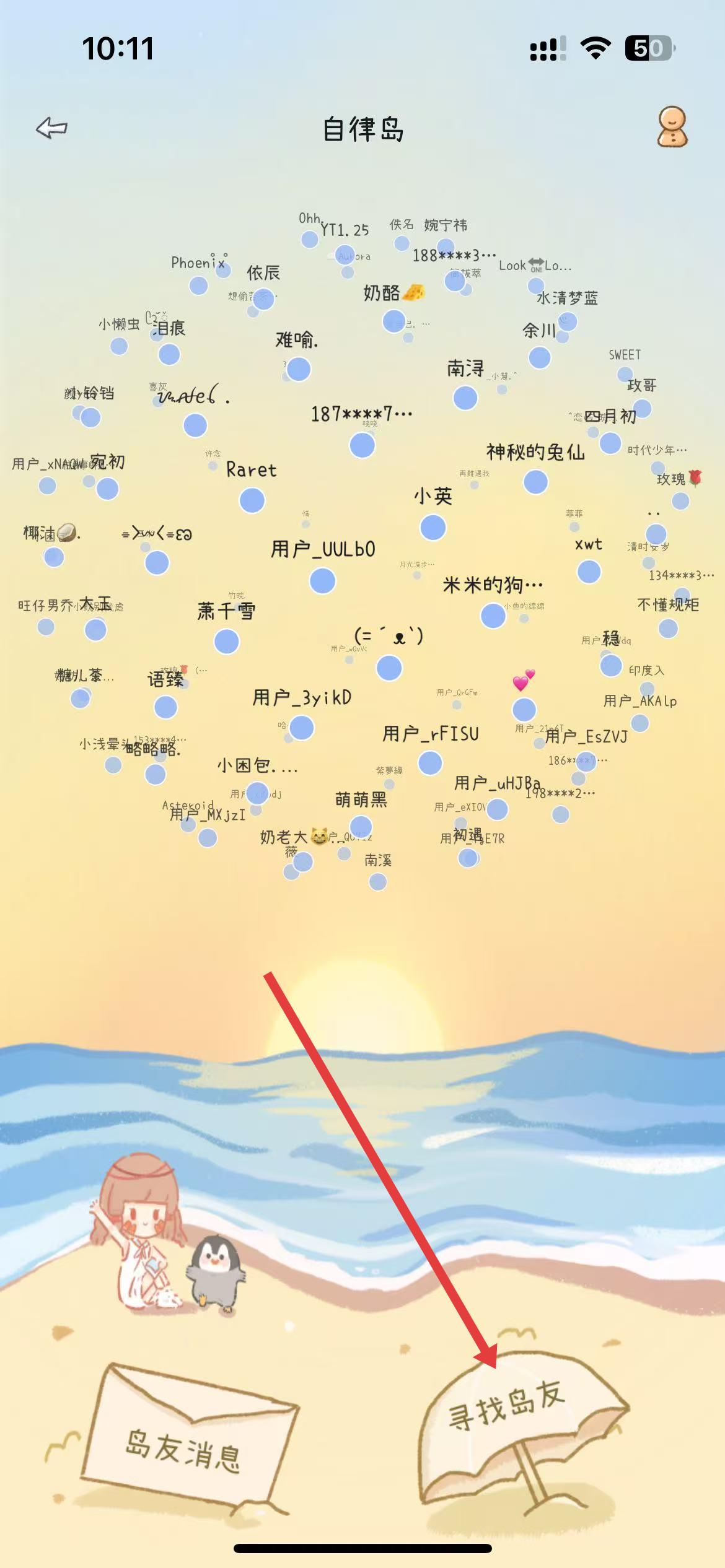 2、在自律島界面中,找到并點(diǎn)擊尋找島友選項(xiàng),進(jìn)入尋找好友的頁面。