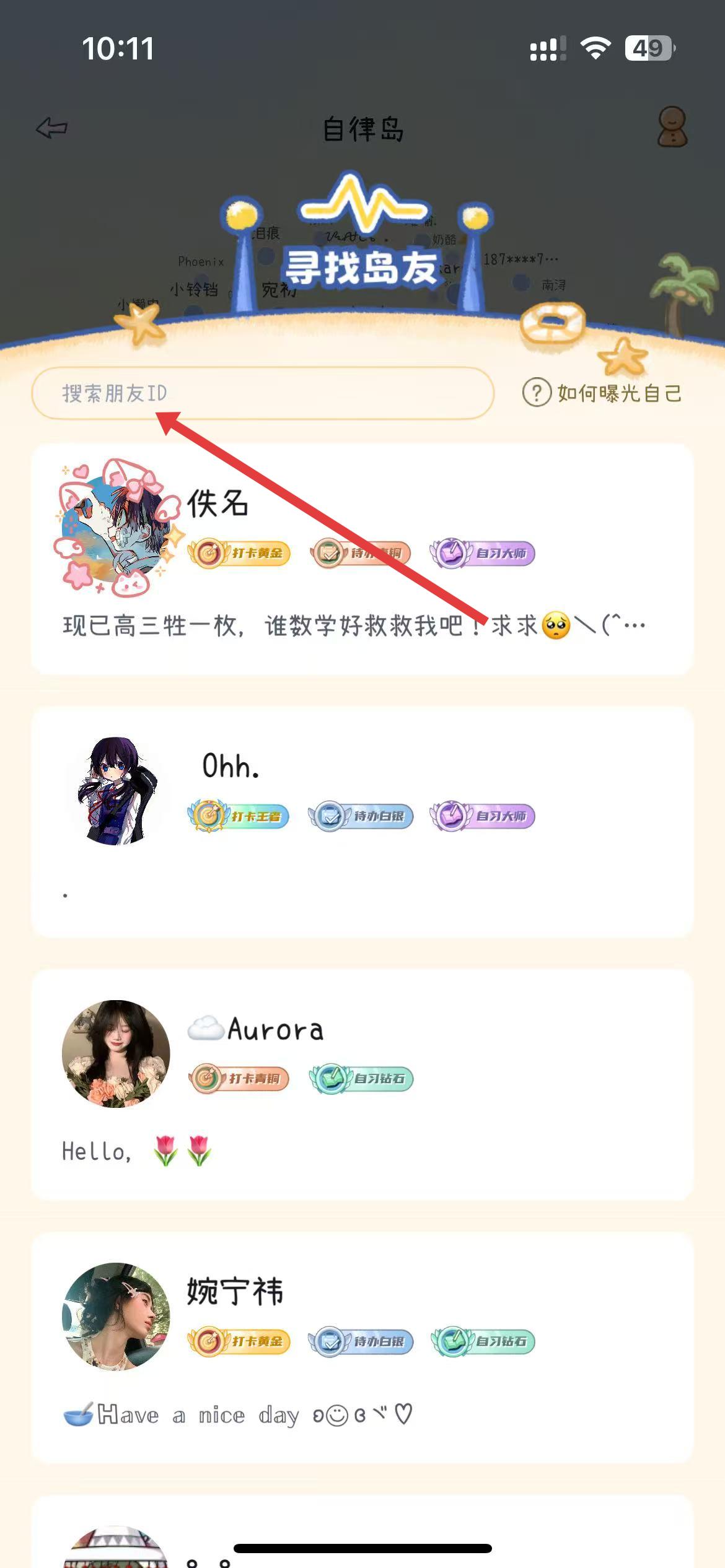 3、在尋找島友頁面上方的搜索框內(nèi),輸入你想要添加好友的ID。