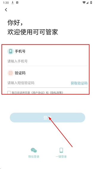 3、輸入手機號碼、驗證碼,勾選協(xié)議,點擊登錄,完成賬號注冊。