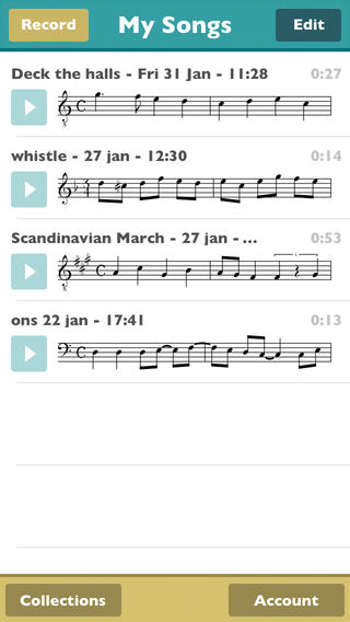 ScoreCloud Express使用起來(lái)很方便,我們只需要打開(kāi)手機(jī)的麥克風(fēng),點(diǎn)擊錄音功能就可以錄制你的音樂(lè)。之后這段音樂(lè)會(huì)通過(guò)系統(tǒng)進(jìn)行轉(zhuǎn)換,一張你的音樂(lè)五線譜就完成了。使用這個(gè)軟件你還可以選擇不同的樂(lè)器來(lái)演奏樂(lè)譜,比如鋼琴等,發(fā)現(xiàn)音調(diào)不準(zhǔn)的地方還能夠進(jìn)行修改,設(shè)計(jì)十分貼心。