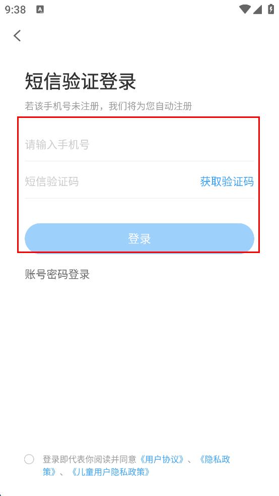 4、在登錄選擇界面,選擇短信驗證登錄,輸入手機號,獲取并輸入驗證碼,點擊登錄即可。