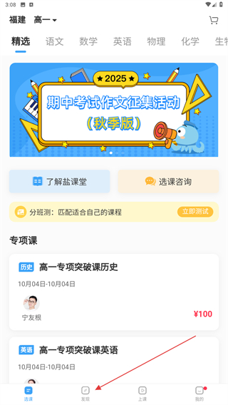 1、打開鹽課堂APP,進入時點擊導(dǎo)航欄中發(fā)現(xiàn)的標簽。