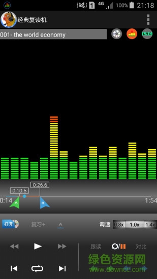 1.具備傳統(tǒng)磁帶復(fù)讀機(jī)的復(fù)讀/暫停、跟讀、變速、對比功能。