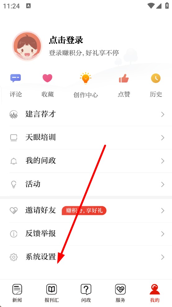 2、在個(gè)人頁面中,點(diǎn)擊系統(tǒng)設(shè)置,進(jìn)入設(shè)置的頁面。