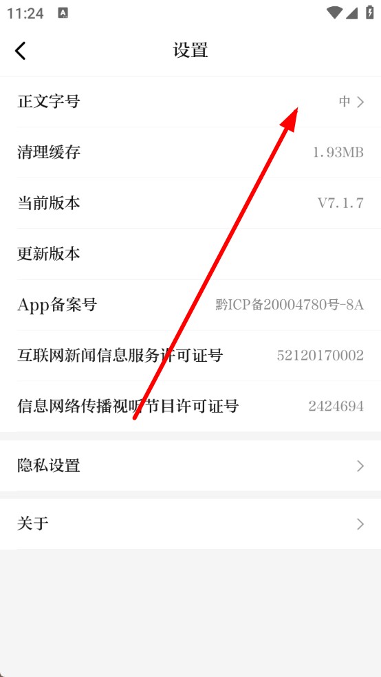 3、進(jìn)入設(shè)置頁面后,點(diǎn)擊正文字號(hào)選項(xiàng)。