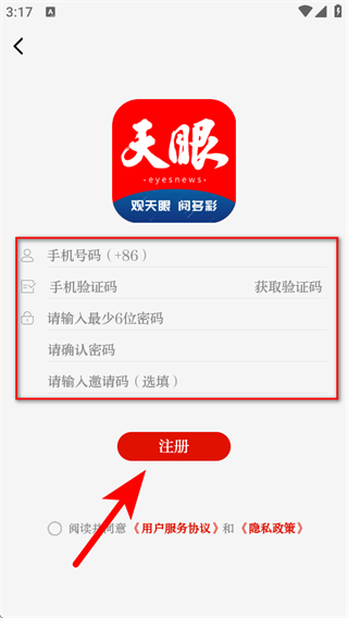 4、在注冊(cè)頁面輸入手機(jī)號(hào)碼、驗(yàn)證碼等,點(diǎn)擊注冊(cè)完成操作。