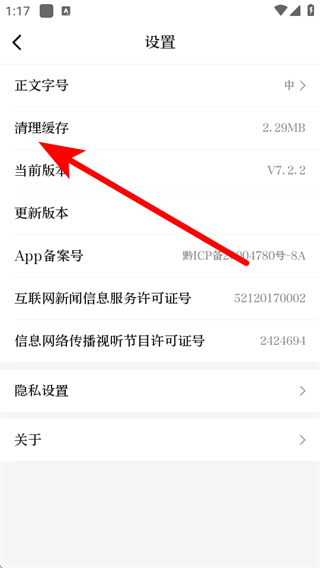 3、在設(shè)置的頁面,點(diǎn)擊清理緩存,即可完成緩存數(shù)據(jù)的清除操作。