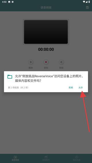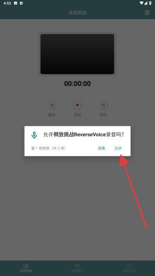 2、點(diǎn)擊后會(huì)彈出允許倒放挑戰(zhàn)錄音,點(diǎn)擊允許。