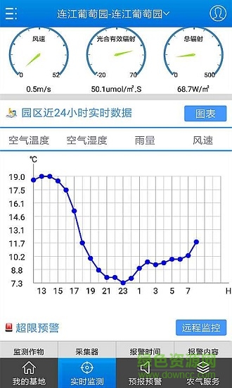 1.以圖表的方式直觀的展示了基地內(nèi)的空氣溫度、濕度和雨量、風(fēng)速等數(shù)據(jù)。