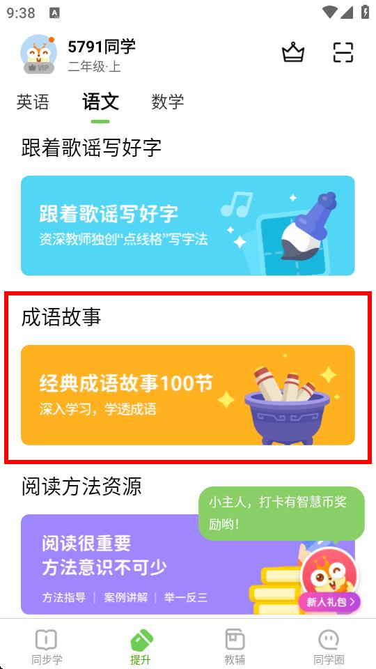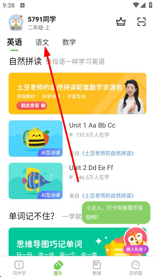 2、在提升界面上方,可選擇英語,語文,數(shù)學(xué)等學(xué)科分類;比如點擊語文。