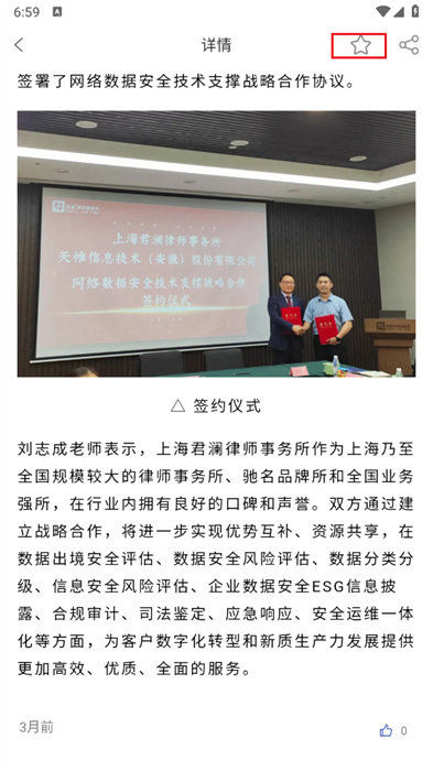 5、還可以點擊屏幕右上方的星星按鈕來進行文章的收藏;