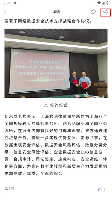 6、也可以點擊屏幕右上方的分享按鈕,來進行文章的分享;