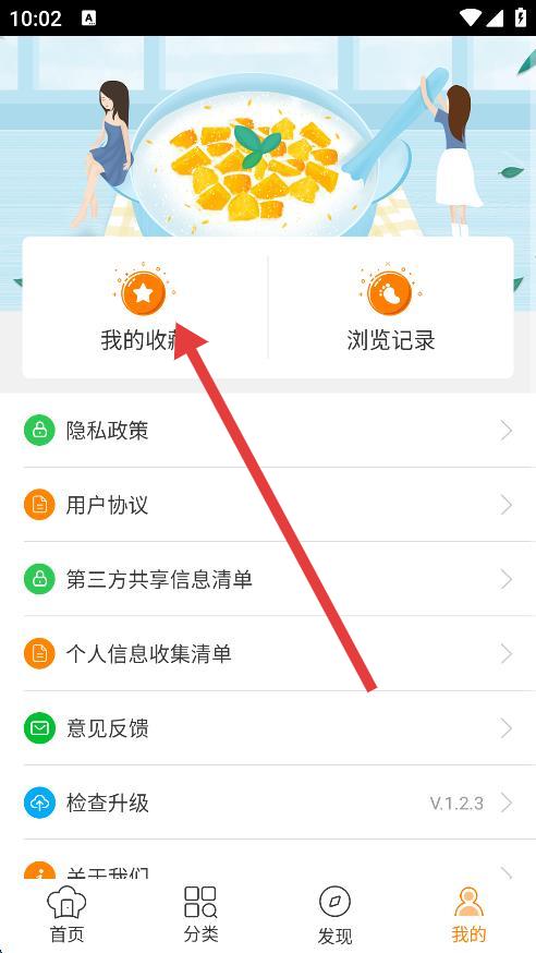 3、進入我的收藏頁面后,點擊需要查看的菜譜。