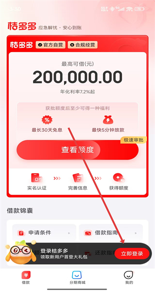 2、在進(jìn)入到App首頁(yè)中,可以點(diǎn)擊下方立即登錄按鈕,進(jìn)行登錄。