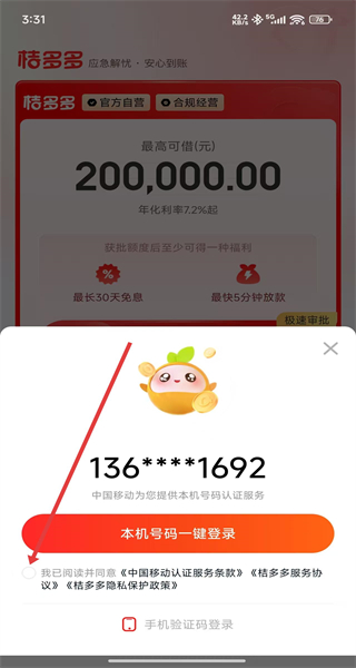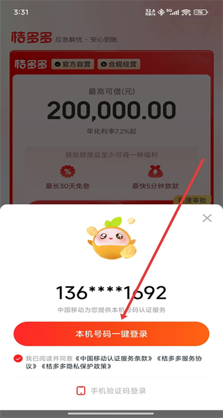 4、在勾選好同意按鈕后,點(diǎn)擊本機(jī)號(hào)碼一鍵登錄按鈕,即可完成登錄。