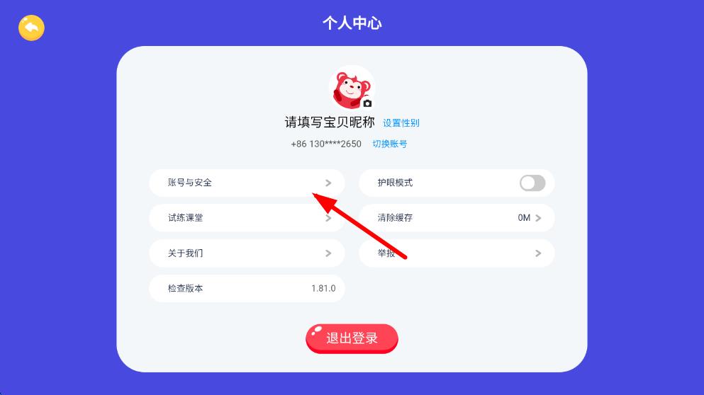 2、進入操作頁面后找到賬號與安全選項進入賬號安全設置界面。