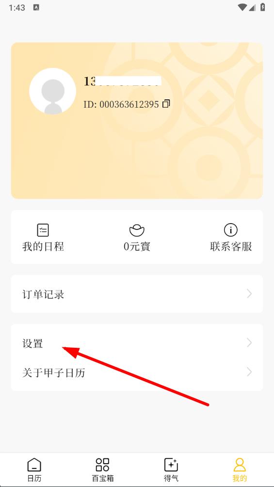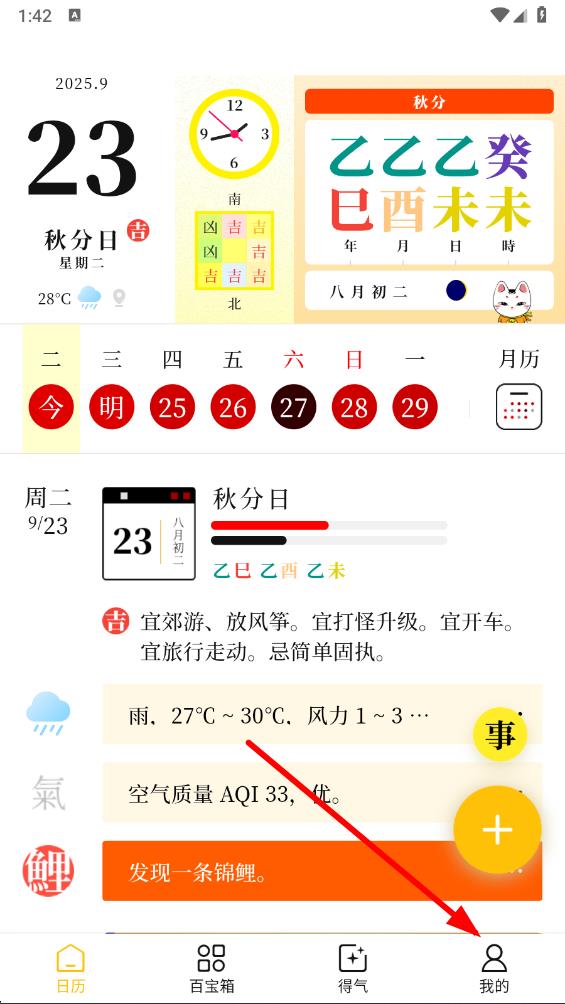 1、打開甲子日歷app,進(jìn)入主界面后,點(diǎn)擊底部導(dǎo)航欄最右側(cè)我的選項(xiàng)。
