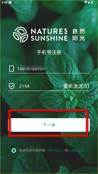 3、在輸入驗(yàn)證碼后,點(diǎn)擊下一步按鈕,進(jìn)入后續(xù)注冊流程。