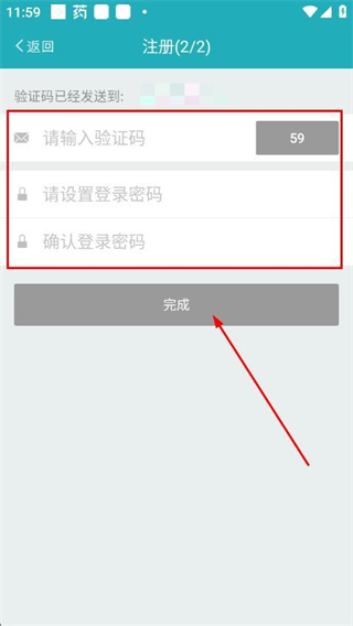 3、輸入驗(yàn)證碼、設(shè)置并確認(rèn)登錄密碼,點(diǎn)擊完成,完成賬號(hào)注冊(cè)。
