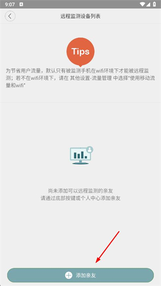 3、進(jìn)入遠(yuǎn)程監(jiān)測(cè)設(shè)備列表頁(yè)面,點(diǎn)擊下方的添加親友按鈕。