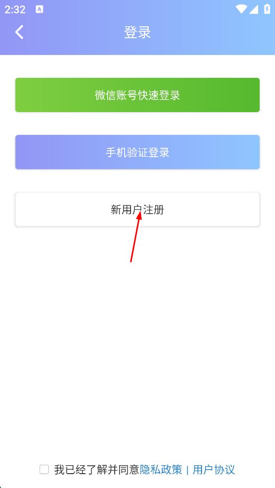 2、在我的頁(yè)面,點(diǎn)擊“新用戶注冊(cè)”。