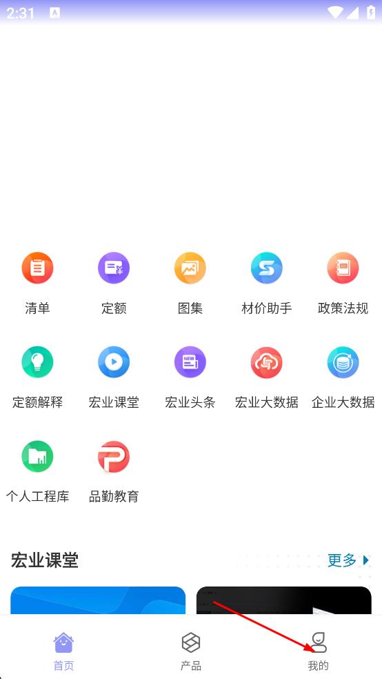 1、打開(kāi)宏業(yè)軟件,點(diǎn)擊右下角“我的”。