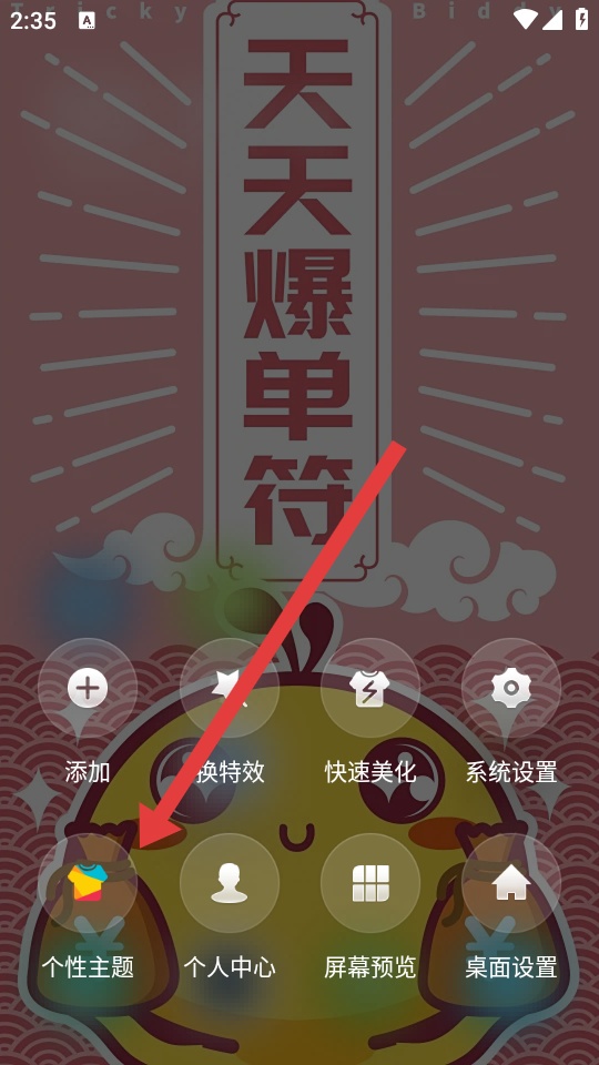 2、在彈出的操作菜單中,點擊個性主題選項,進入主題/壁紙選擇頁面。