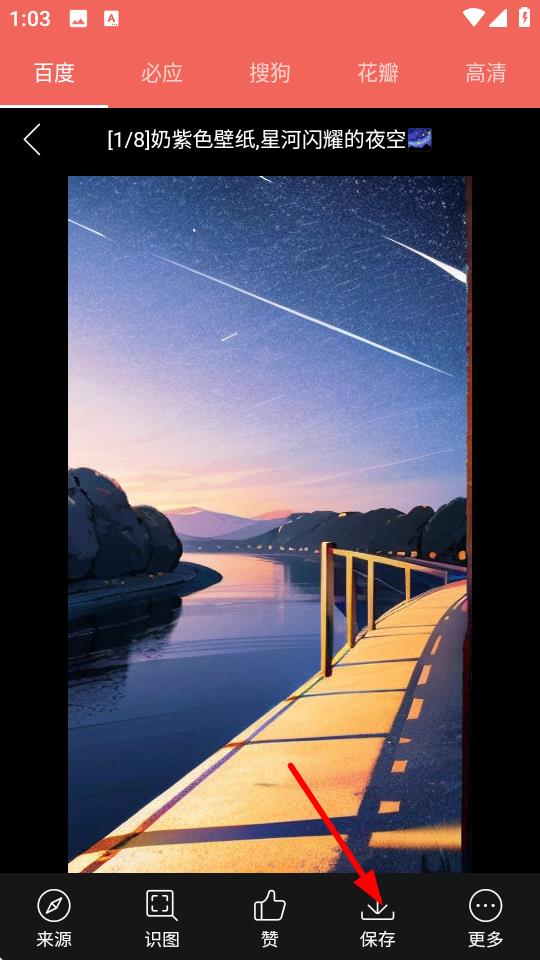 4、點(diǎn)擊壁紙?jiān)斍轫?yè)面下方的保存按鈕,即可將該手機(jī)壁紙保存到手機(jī)本地相冊(cè)。