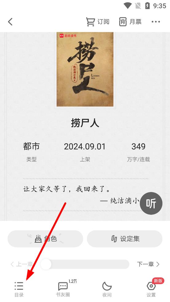 2、在書籍詳情界面,點(diǎn)擊左下角的目錄按鈕,就可以進(jìn)入目錄查看頁面。