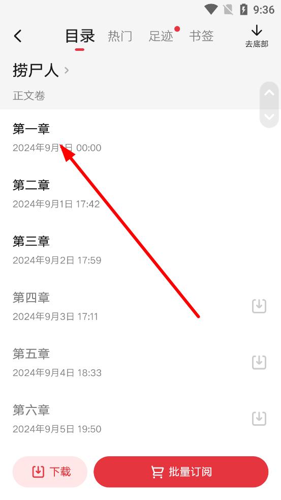 3、在目錄頁面,可看到書籍各章節(jié)列表如示例中第一章等,點(diǎn)擊對應(yīng)章節(jié)即可跳轉(zhuǎn)閱讀。