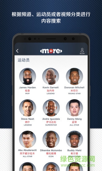 5.在這里你能找到豐富的產品和原創(chuàng)短視頻內容。MORE將向你講述體育明星的精彩故事,從NBA傳奇加內特、納什、姚明、諾維茨基、穆托姆博、慈世平到現(xiàn)役巨星哈登、伊戈達拉,還有聯(lián)盟小鮮肉米切爾、拉文、東契奇…當然也少不了我們的CBA明星和國內外知名意見領袖。