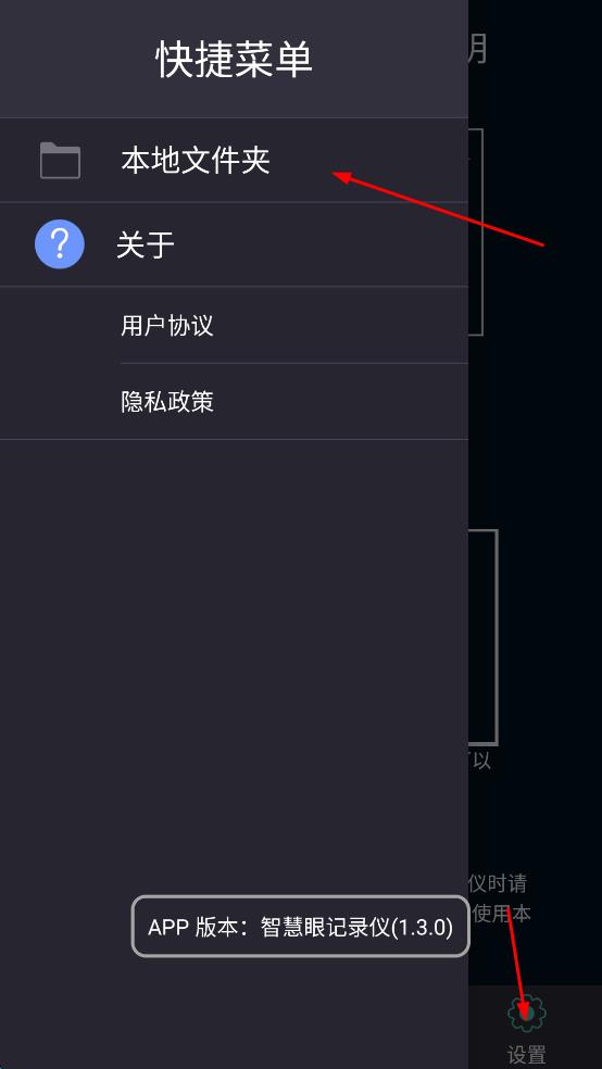 2、點擊右下角的設置按鍵,打開設置后,點擊本地文件夾,即可打開查看存儲的內容。