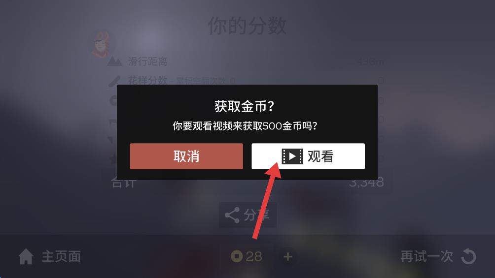 3、也可點(diǎn)擊金幣旁邊+號,點(diǎn)擊觀看廣告,進(jìn)入廣告頁面。