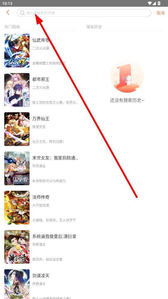 2、進(jìn)入搜索界面后,在搜索框內(nèi)輸入想要查找的日漫名稱或作者名稱。