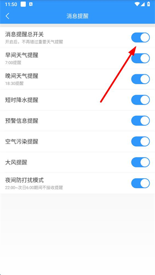 4、在消息提醒頁面,點擊消息提醒總開關(guān)右側(cè)的開關(guān),將其關(guān)閉即可關(guān)閉消息提醒。