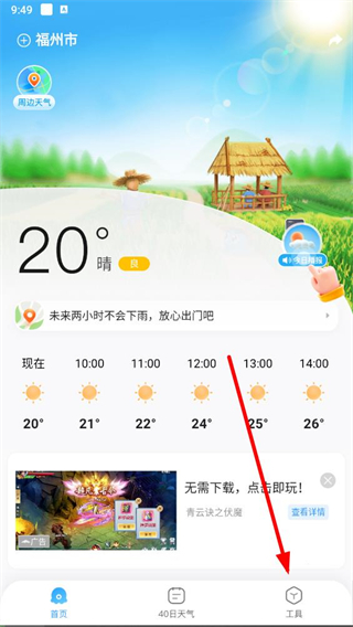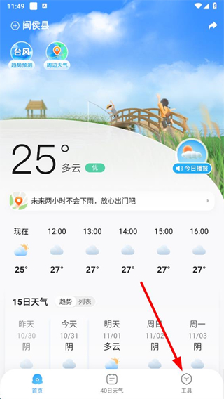 1、打開2345天氣預(yù)報APP,點擊右下角工具選項。