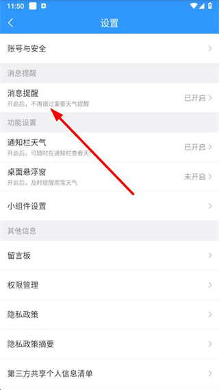 3、進(jìn)入設(shè)置頁面后,點擊消息提醒選項。