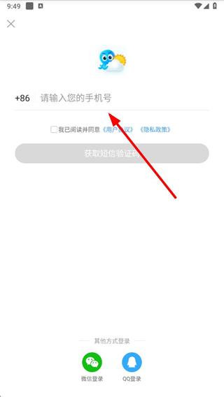 4、在手機(jī)號登錄頁面,輸入手機(jī)號,勾選同意協(xié)議后,點擊獲取短信驗證碼,填入驗證碼完成登錄。